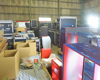 現場設置 ⇒ 設置期間終了後の撤去作業 ⇒ 撤去什器の倉庫受入れ ⇒ 返却什器メンテ