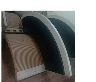 この什器は、外側も内側も縦分割、1/4円に分割して製作してあります。